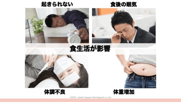 心身の不調があると生活リズムや食事内容が乱れがちになります。